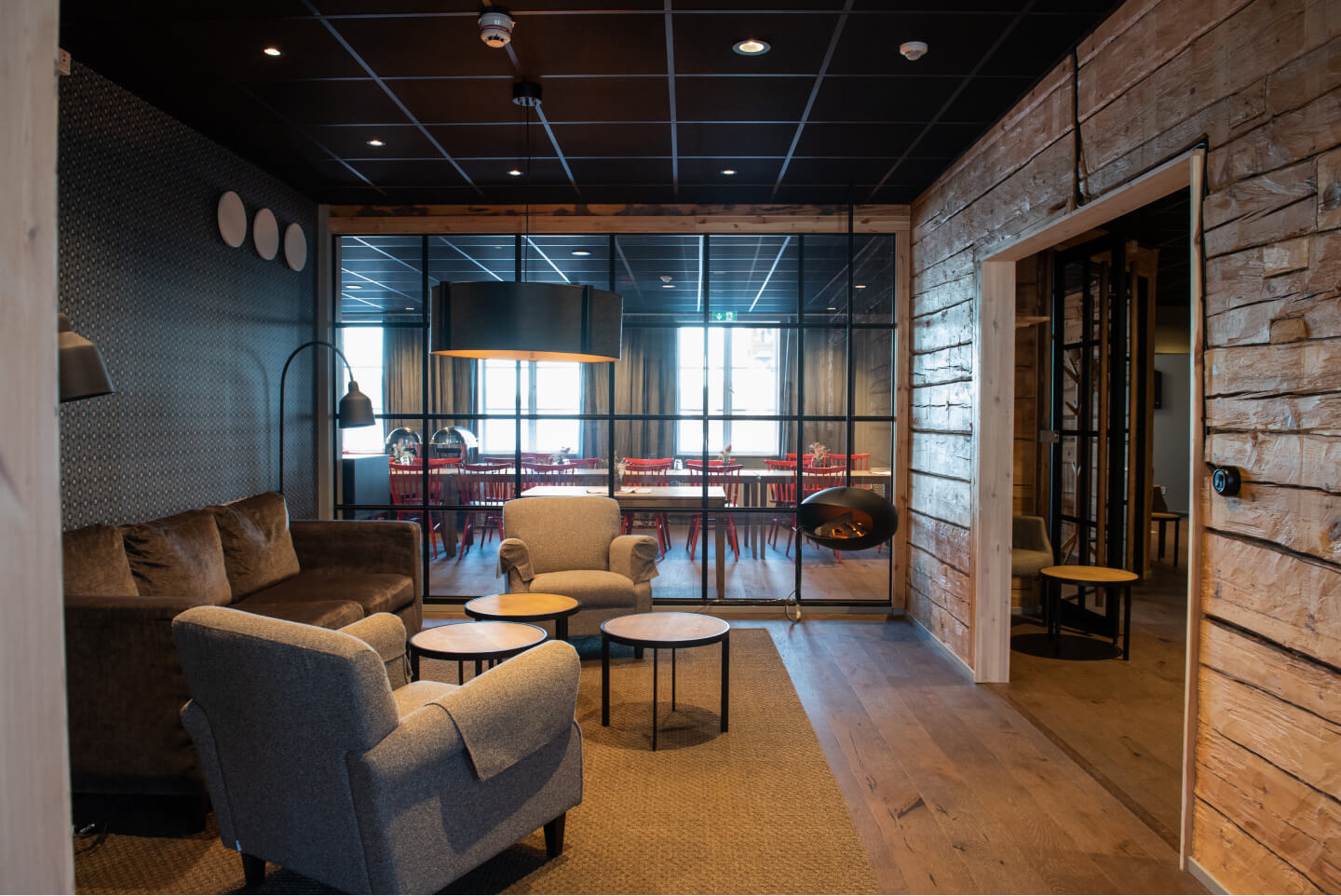 Ingen lodge utan en lounge där man kan koppla av och umgås framför den öppna brasan eller hänga i den gemensamma ”baren”. I Järvsö Lodge har vi lagt lite extra kärlek till de tilltagna gemensamma utrymmena.